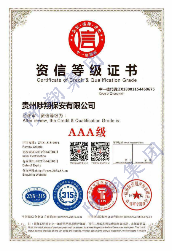 > 資信等級(jí)證書(shū)AAA級(jí)